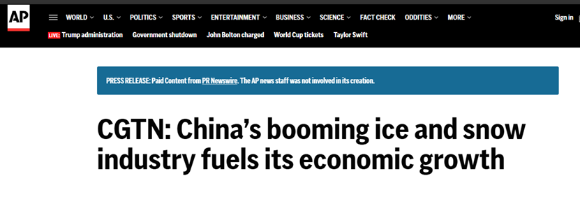 报道还提到,为了利用丰富的冰雪资源推动经济发展,中国正在加大冬季经济的拓展力度,涵盖体育、文化、装备和旅游等多个领域。根据国务院办公厅发布的指导文件,目标是在2027年将冰雪经济规模提升至1.2万亿元(约1690亿美元),到2030年达到1.5万亿元。