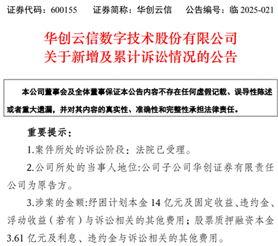 上市公司华创云信(600155.SH)近日发布公告称,子公司华创证券因纾困计划及股票质押纠纷,对贵州百灵(002424.SZ)大股东姜伟及其一致行动人提起诉讼,涉案金额合计为17.61亿元,引发资本市场较多关注。
